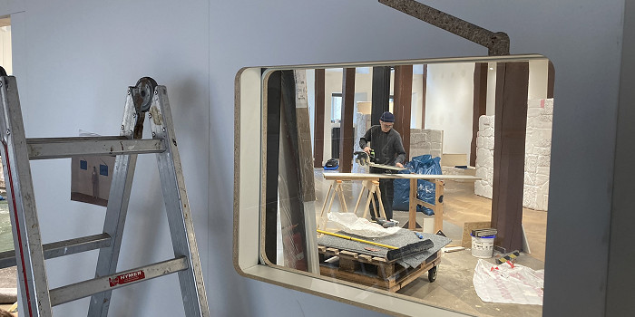 Das Gläserne Studio ist bereits räumlich aufgebaut. Es folgen nun die technischen Geräte und Feinheiten, damit alles läuft für den Sendebetrieb bis zum 1. April. Einen unglaublichen großen Dank gehen dafür an Jan und Jochen, die den Studiobau erst möglich gemacht haben! Danke auch an alle weiteren HelferInnen, die uns beim Aufbau unterstützt haben. Foto. privat