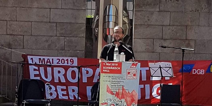 Carola Theißen hat für Fokus Südwest mit Arne Gailing, dem Gewerkschaftssekretär ver.di Heilbronn-Neckar-Franken gesprochen. Er hat die diesjährige Mairede in Schwäbisch Hall über die Bedeutung eines geeinten Europas gehalten.