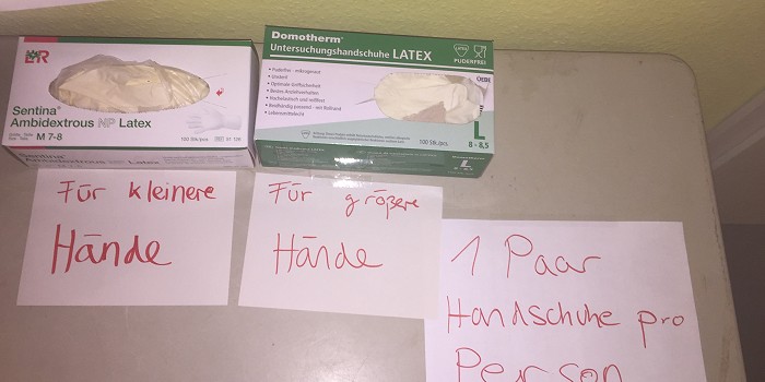 Allerdings warten wir noch auf die Einmalmasken als Mundschutz.