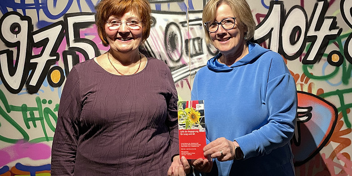 Ilona und Ingeborg bei ihrer Begegnung mit unserer Fotowand.